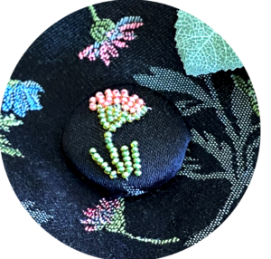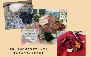 今回は、お花のビーズ刺繍をあしらった小さなブローチ作りを予定しております(材料費500円のみ、当日お支払いをお願いいいたします)